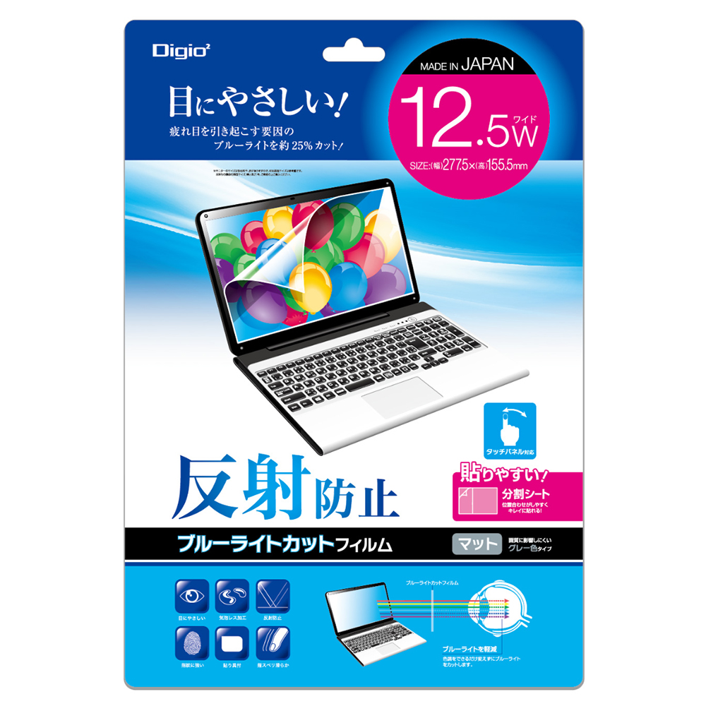 ●目に影響を及ぼすブルーライトを色調を崩すことなく低減し、まぶしさやチラつきを抑えます。●反射防止タイプなので外光の画面への映り込みを抑えます。●指のスベリが滑らかで快適なタッチパネル操作が行えます。●自己吸着タイプなので画面にぴったり貼り付き、簡単きれいに貼ることができます。●専用フィルムなので、切らずにそのまま使用できます。