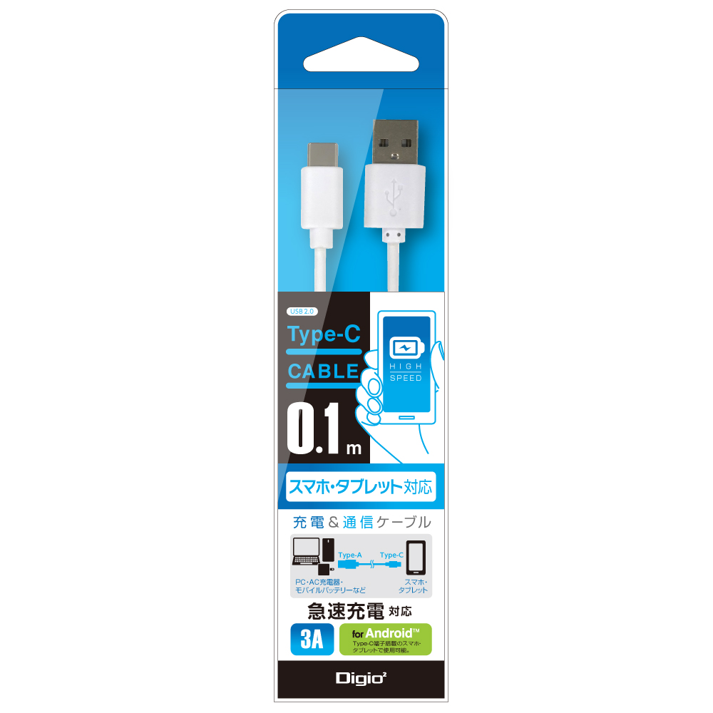 3A対応 スマートフォン・タブレット用 Type-C ケーブル/0.1m ホワイト