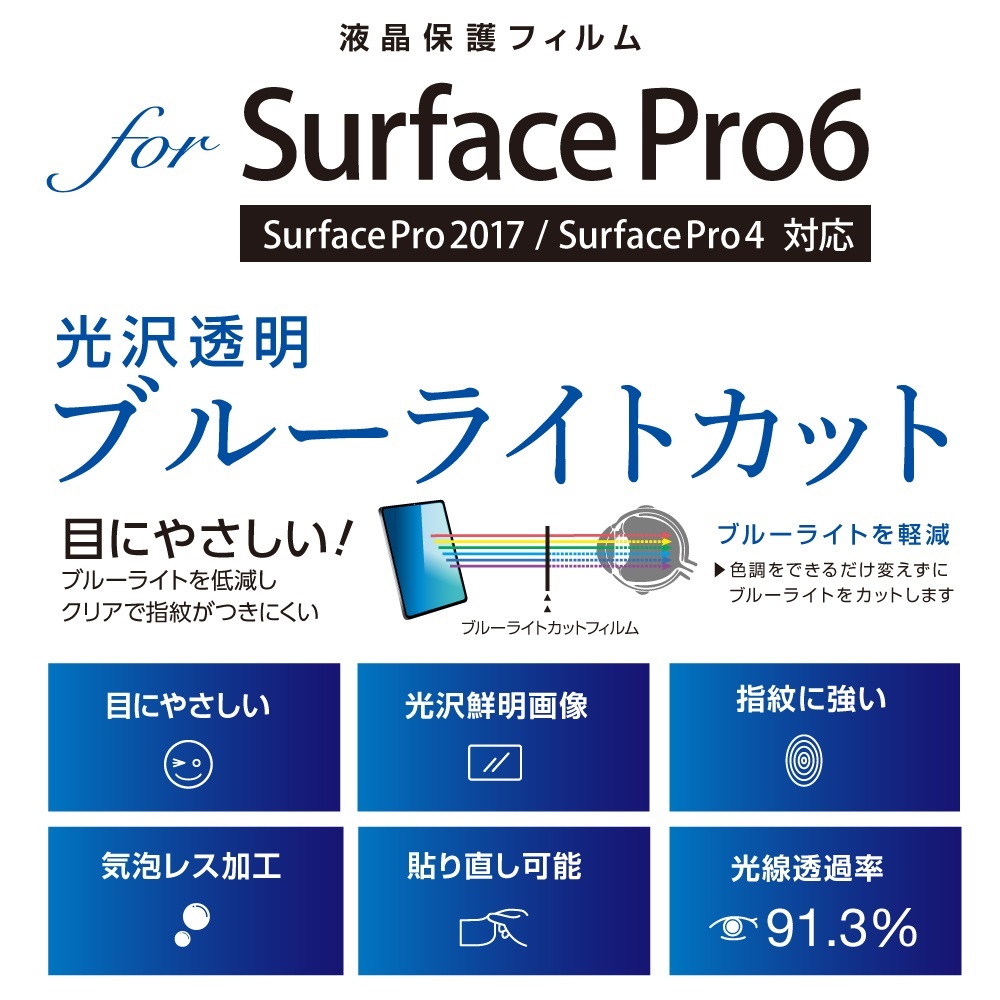 SurfacePro6用フィルムブルーライトカット透明光沢