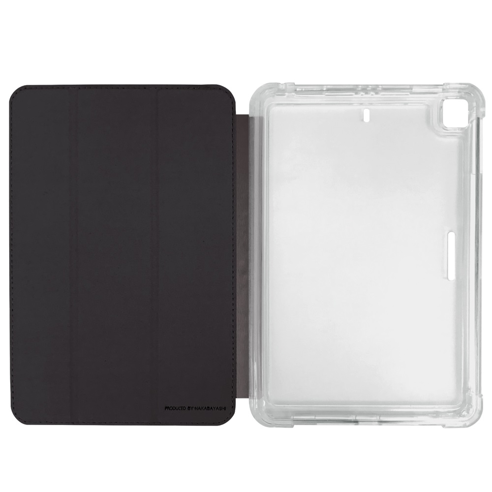 丈夫なポリカーボネートとクッション性のあるTPUを使ったハイブリッド構造の衝撃吸収ケース。PU製液晶カバーとの組み合わせで、iPadProをしっかりガードします。ケースを付けたまま写真や動画の撮影ができ、ケーブル等の接続も可能です。