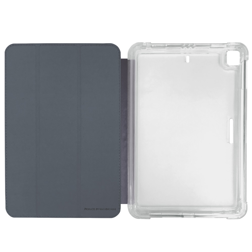 丈夫なポリカーボネートとクッション性のあるTPUを使ったハイブリッド構造の衝撃吸収ケース。PU製液晶カバーとの組み合わせで、iPadProをしっかりガードします。ケースを付けたまま写真や動画の撮影ができ、ケーブル等の接続も可能です。