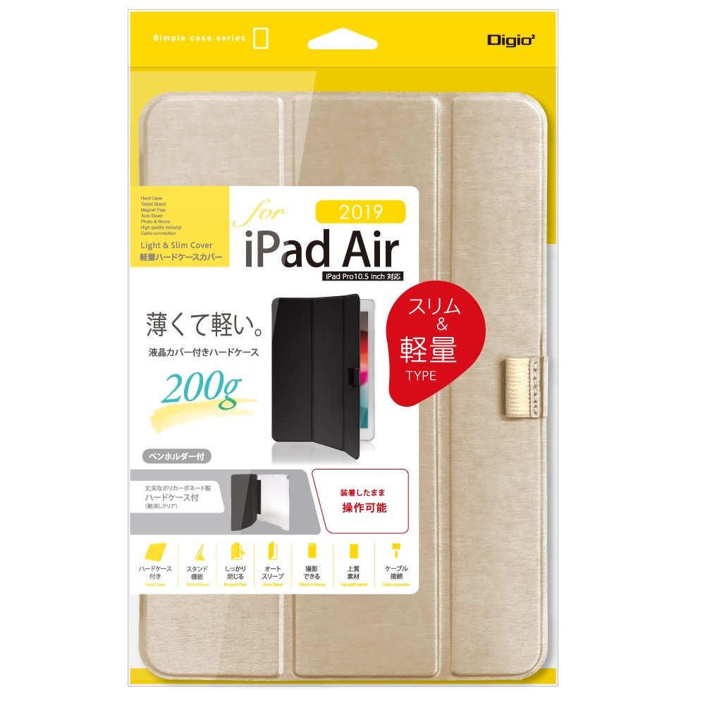 薄くて軽い、iPad Air 2019用液晶カバー付きハードケース ゴールド