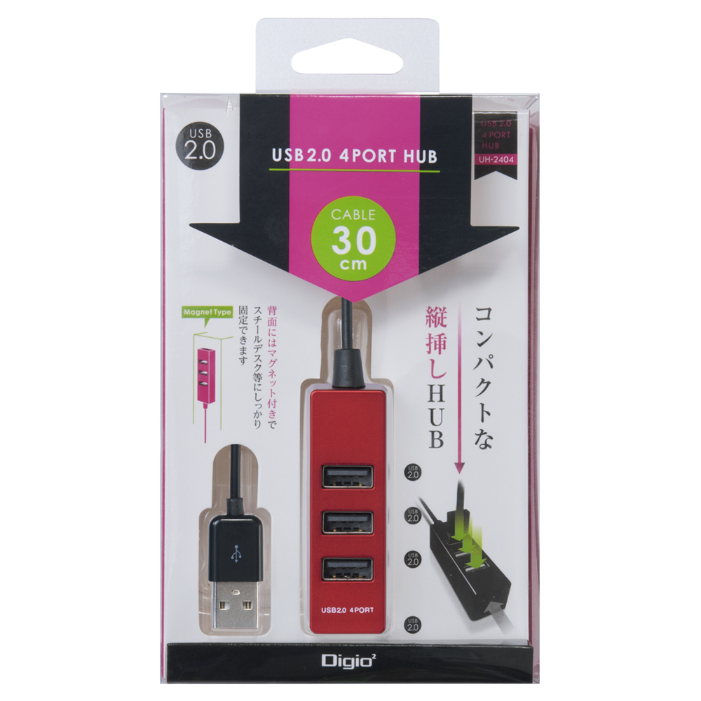 コンパクトな縦挿し4ポートハブ。底面マグネット付き。