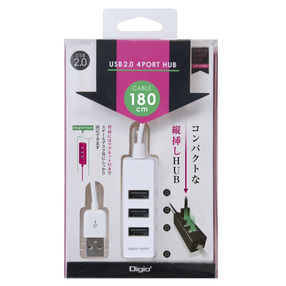 コンパクトな縦挿し4ポートハブ。底面マグネット付き。