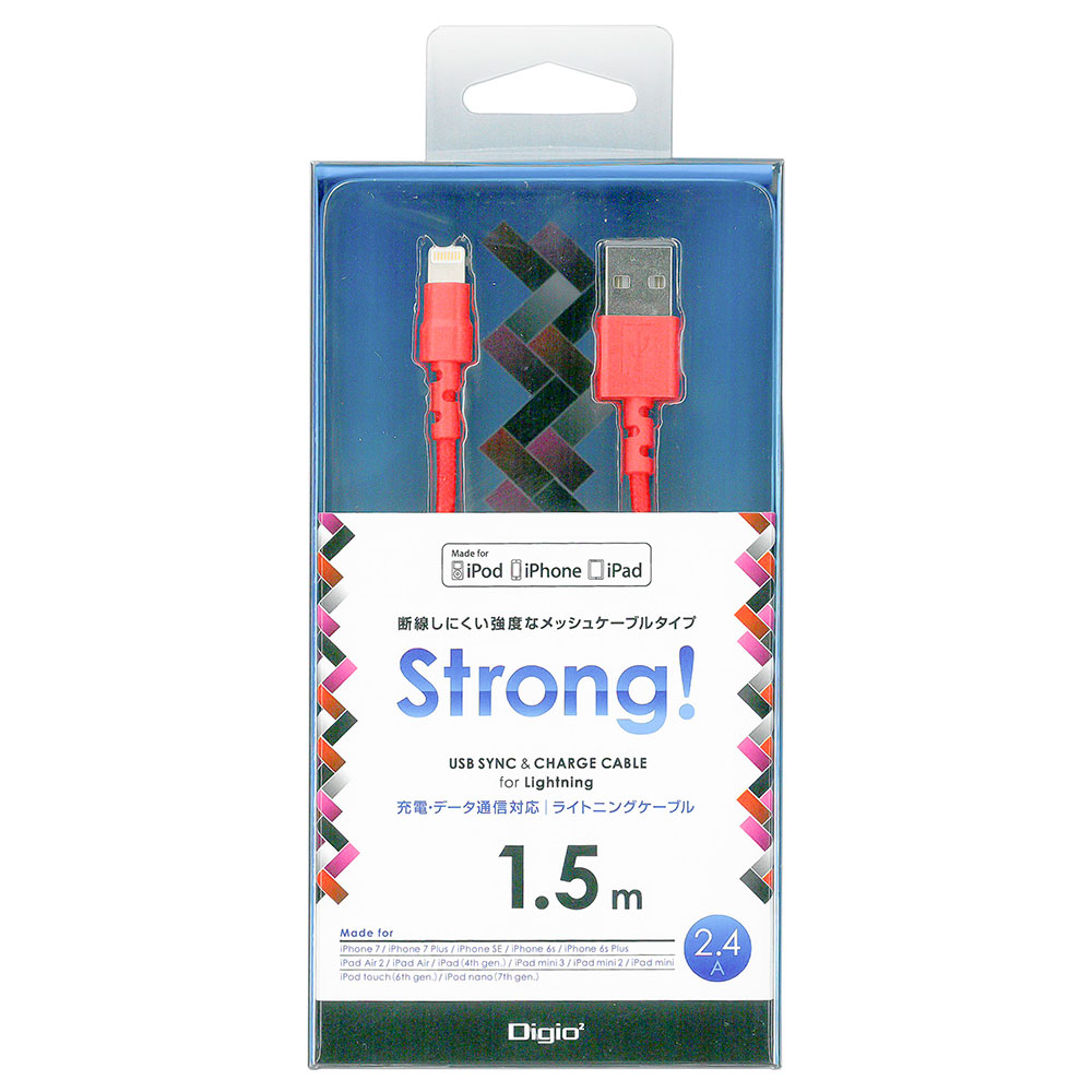 Apple社Lightningポートを搭載し「iPhone、iPad、iPod」に対応した充電・データ通信が可能なライトニングケーブルです。断線しにくい強度なメッシュケーブルでコネクタの付け根部も耐久性に優れています。