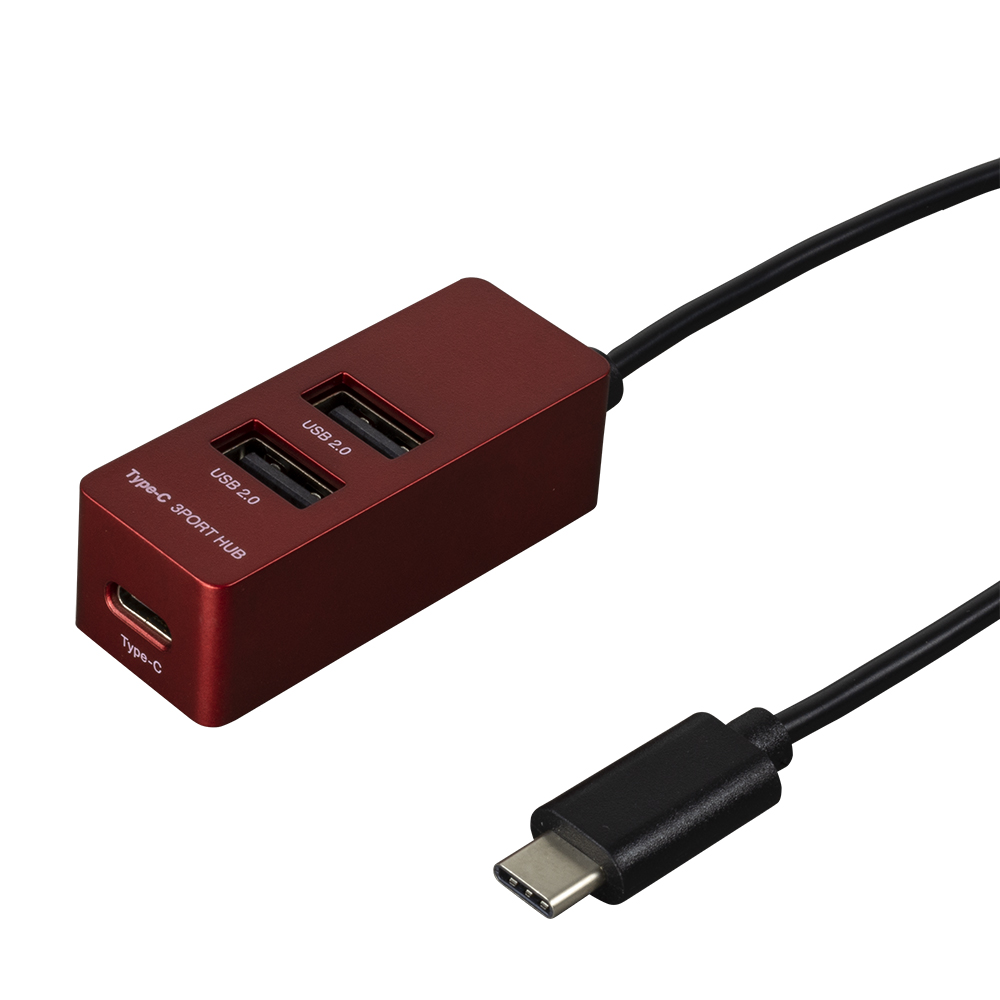 コンパクトな縦挿し Type-C/USB2.0/3ポートハブ【UH-C2463シリーズ】レッド