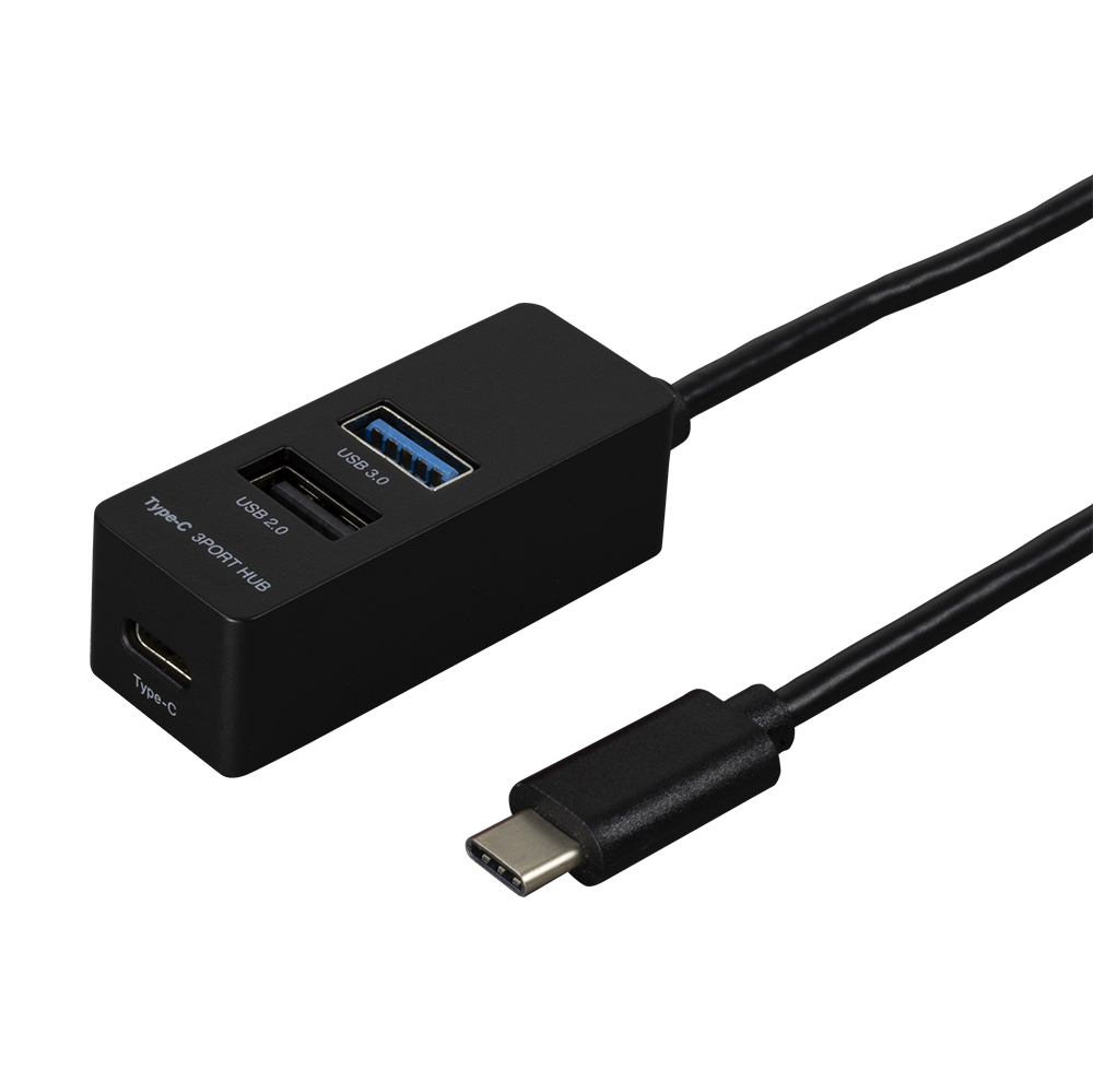 コンパクトな縦挿し Type-C/USB3.0+2.0/3ポートハブ【UH-C3123シリーズ】ブラック