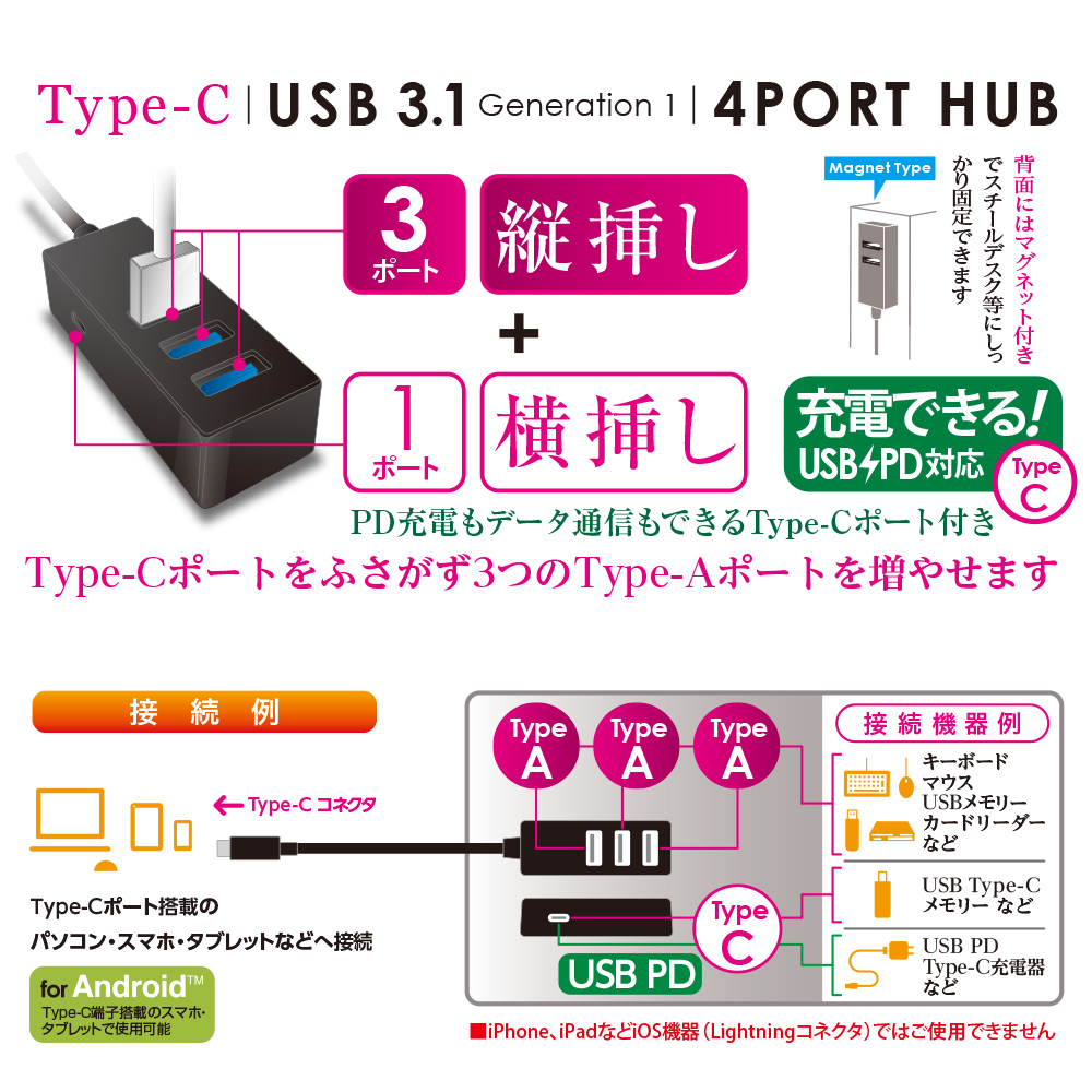 iPhone、iPadなどiOS機器(Lightningコネクタ)ではご使用できません