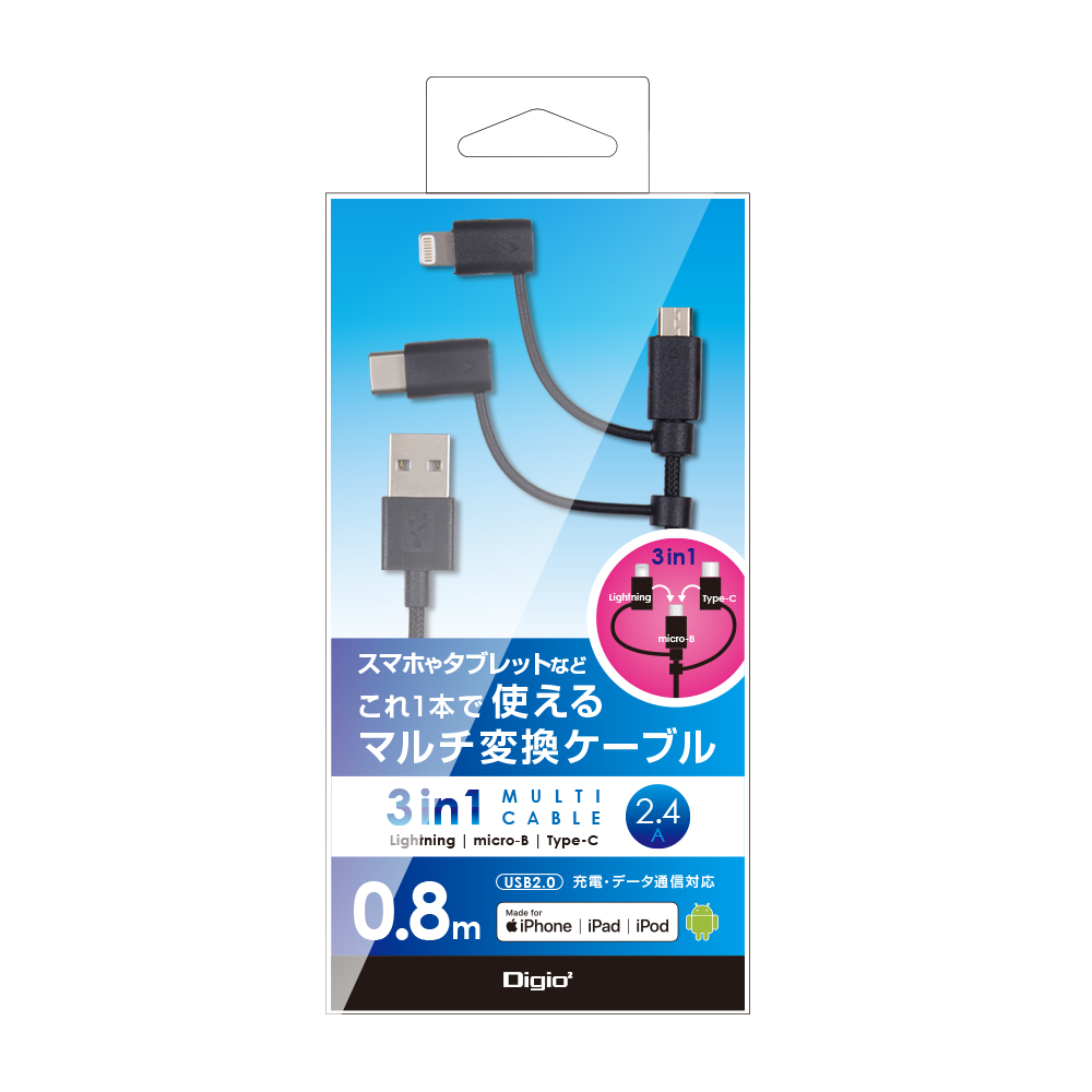 スマホやタブレットなど、これ1本で使える3IN1マルチ変換ケーブル