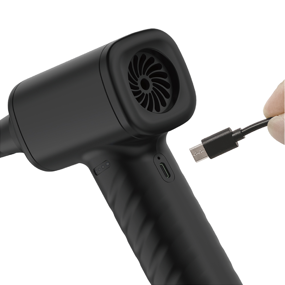 「電動エアダスター充電式」はUSB給電タイプのエアダスターです。充電式のため繰り返し使用でき、一般的なガス缶式エアダスターに比べて経済的です。