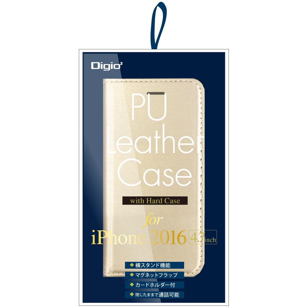 iPhone 7用 PUレザーケース ハードケース付 ゴールド