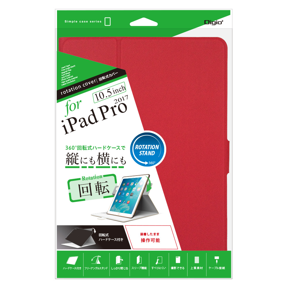 iPadPro 10.5インチ用回転式カバー レッド
