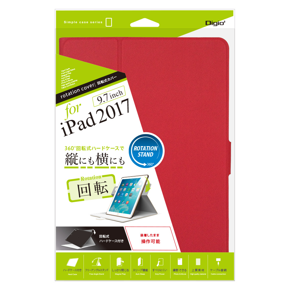 iPad9.7インチ用回転式カバー レッド