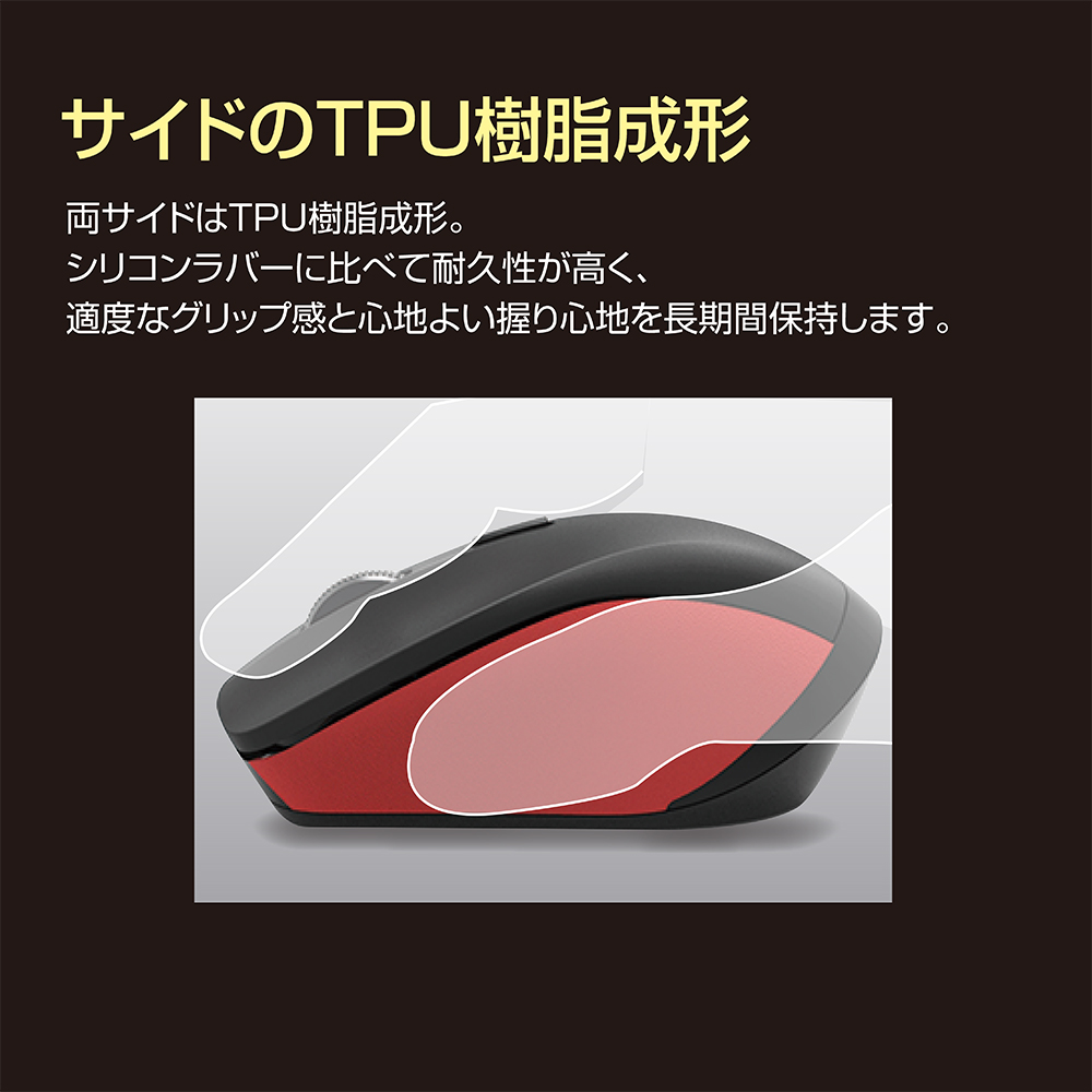 両サイドはTPU樹脂成形。心地よい握り心地を長期間保持します。
