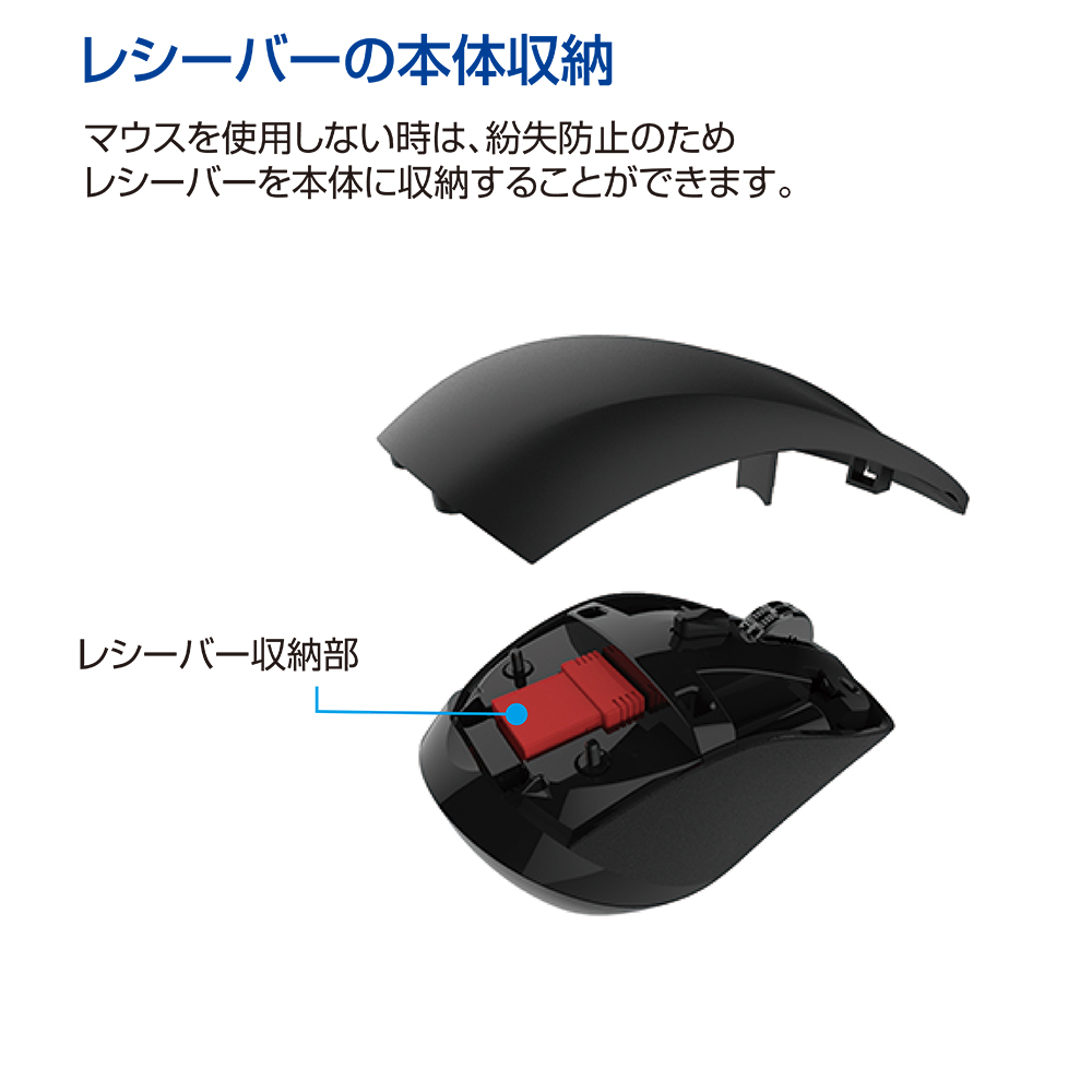非使用時、持ち運び時の紛失を防ぐため、レシーバーは本体に収納できます*4。