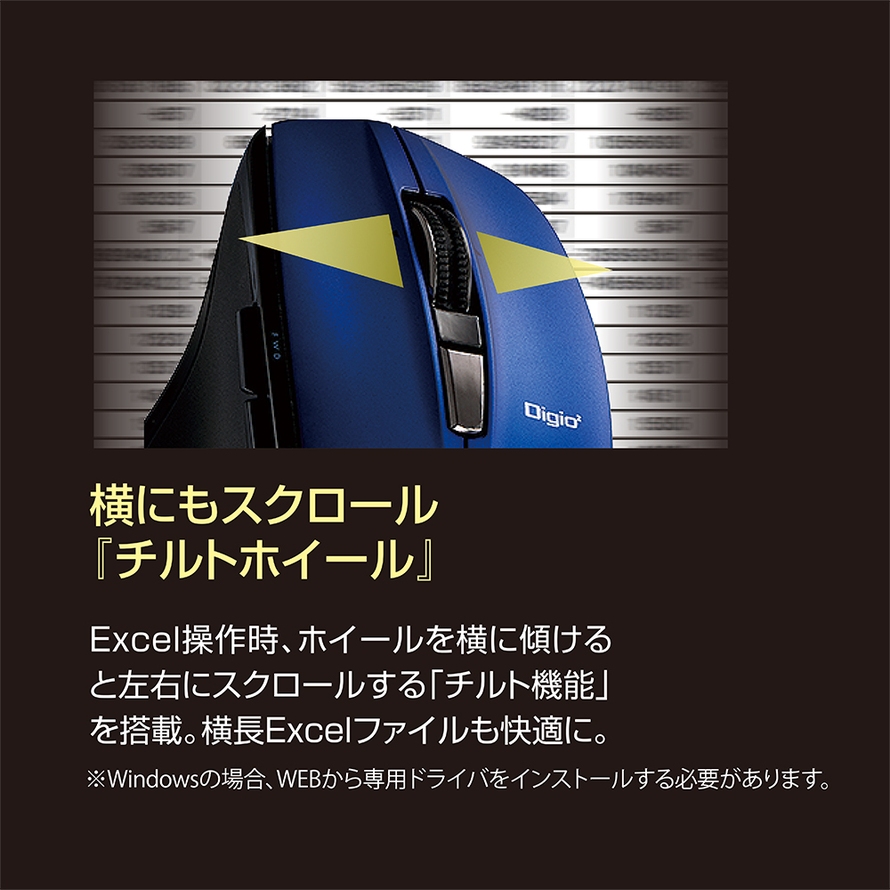 Excel使用時、ホイールを倒せば横にスクロールする”チルト機能”を搭載*1。