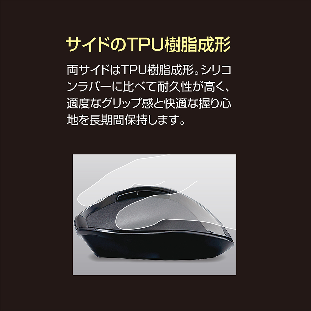 両サイドはTPU樹脂成形。心地よい握り心地を長期間保持します。