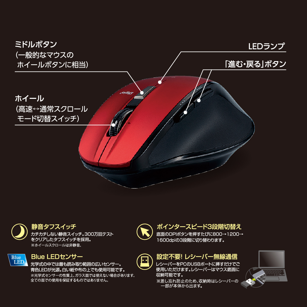 高速スクロールホイール搭載<神速>シリーズ無線静音5ボタンBlueLEDマウス/ブラック