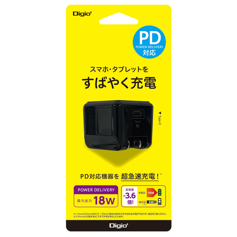 18W PD充電対応 USB Type-C 1ポート充電器 ブラック