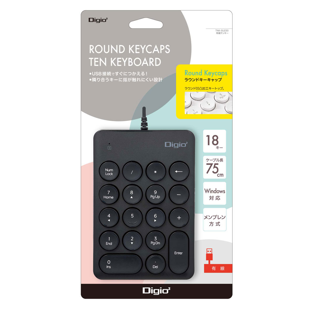 ラウンドキーキャップ有線テンキーボード/ブラック