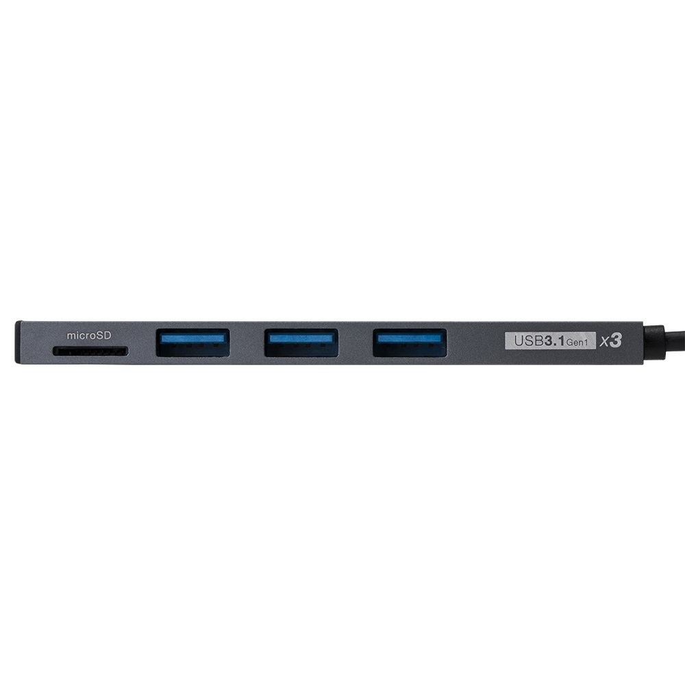 アルミ極薄USBハブ【STIX ®】 シリーズ USB3.1Gen1(3.0) Type-C変換3ポート&マイクロSDカードリーダー付ハブ/グレー