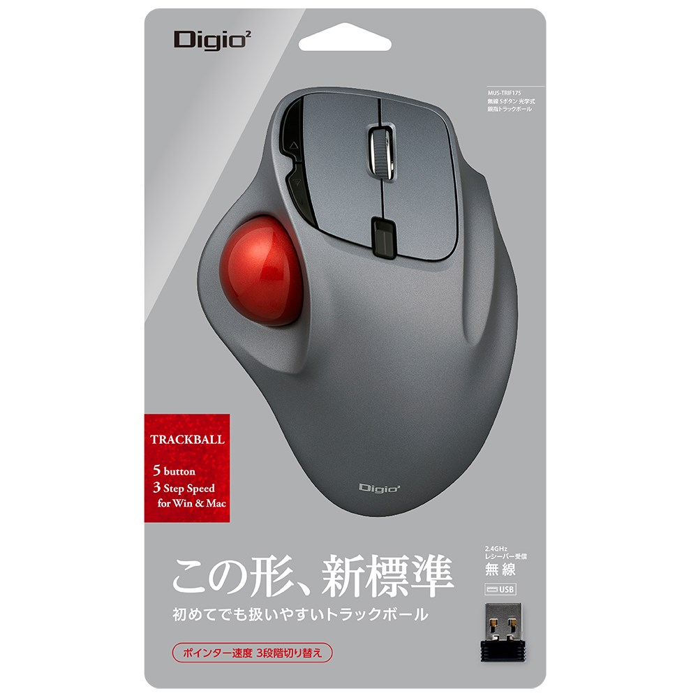 スタンダード 無線5ボタン光学式親指トラックボール グレー