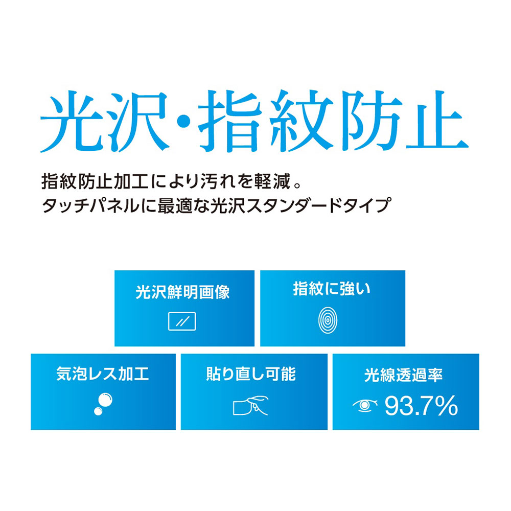 光沢・指紋防止指紋防止加工により汚れを軽減。タッチパネルに最適な光沢スタンダード。