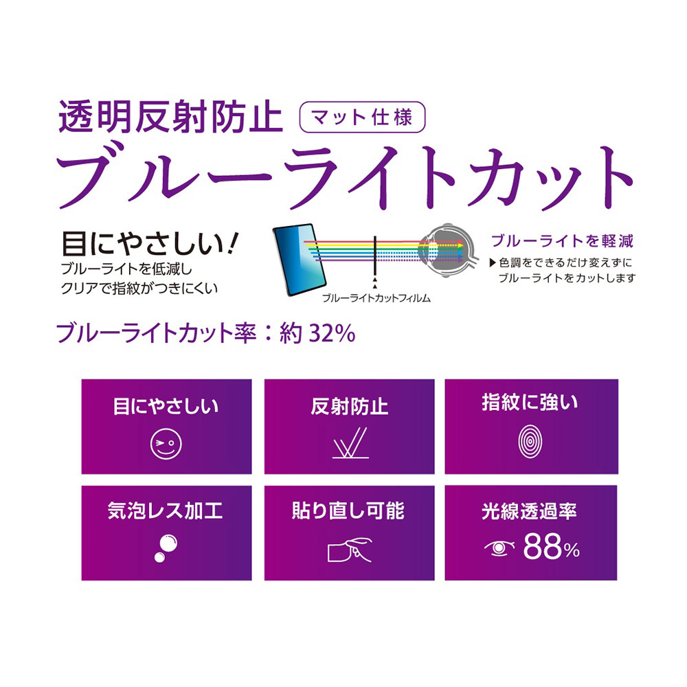 目にやさしい!ブルーライトを低減しクリアで指紋がつきにくい。ブルーライトカット率約32%