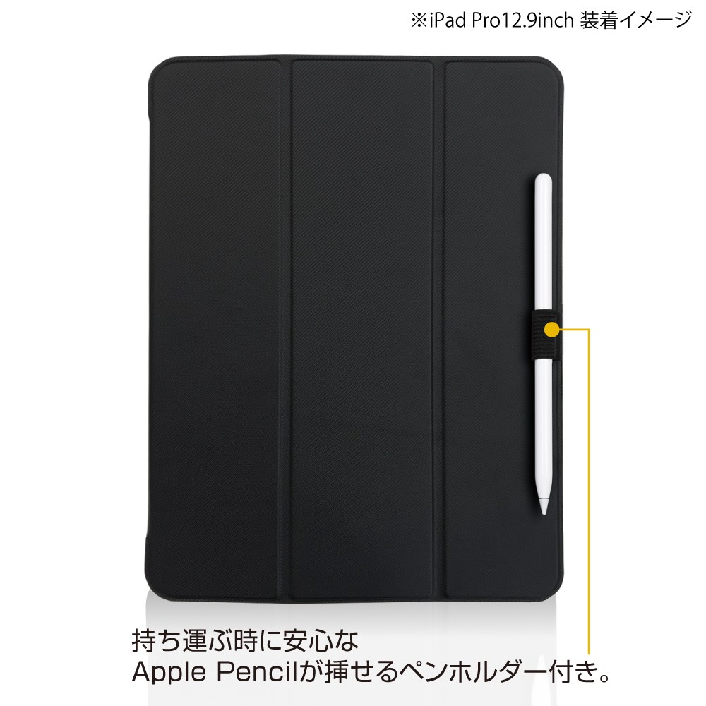 Apple Pencilが挿せるペンホルダー付きで持ち運ぶ時も安心。