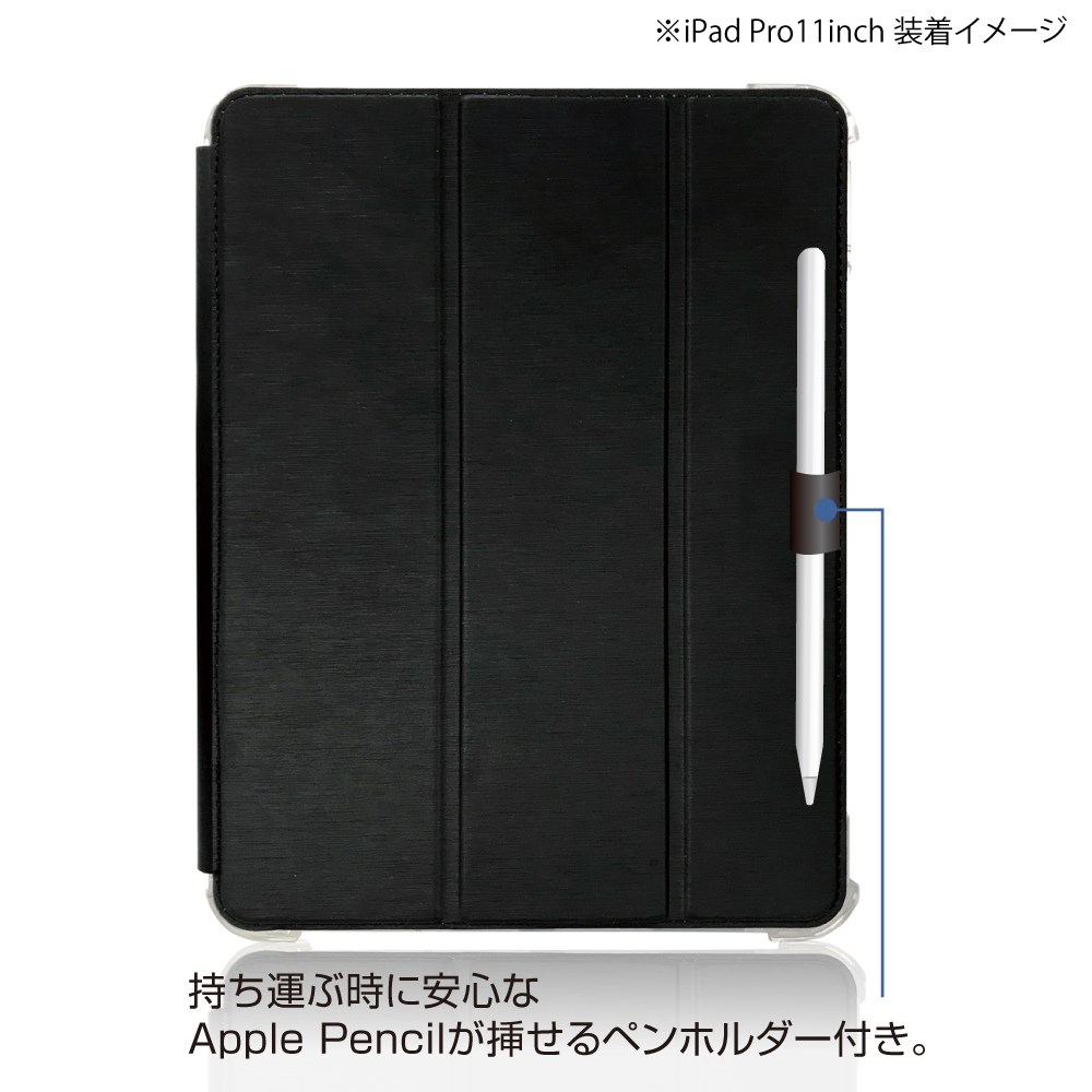 Apple Pencilが挿せるペンホルダー付きで持ち運ぶ時も安心。