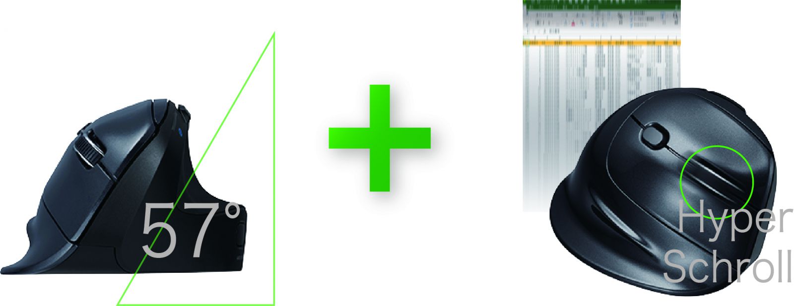 約57°の傾斜角度。人間工学(エルゴノミクス)に基づいて設計され自然な角度で握ることができます