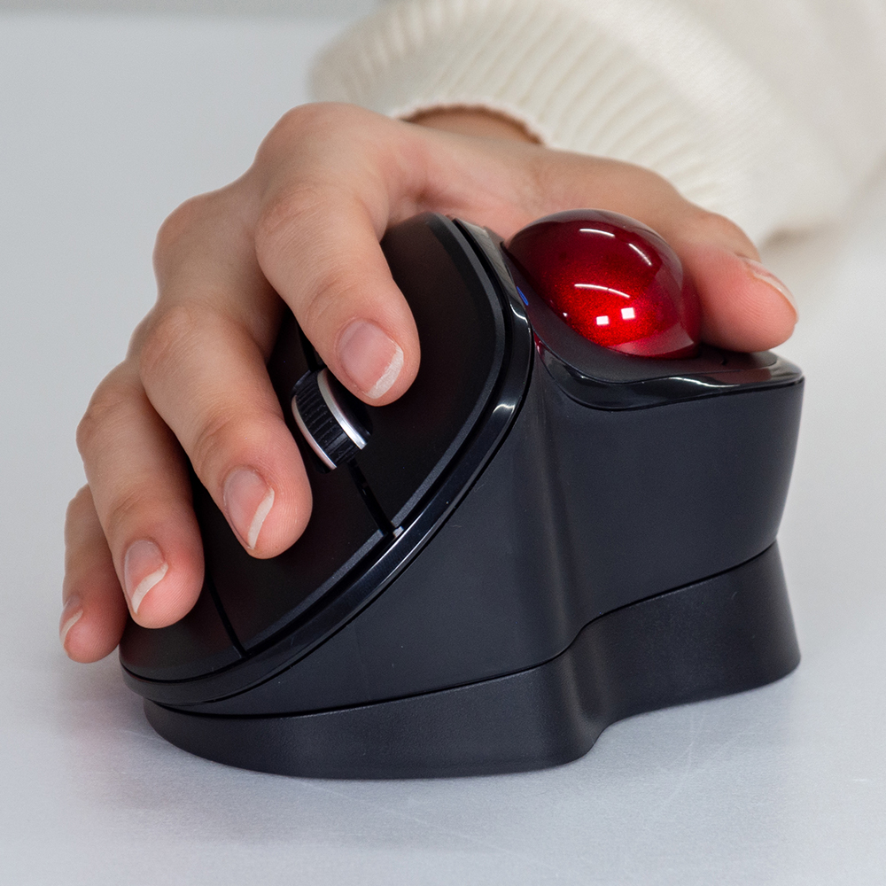 トラックボールは指先だけでポインターを操作するため、本体を動かす必要がありません。限られたスペースで作業でき、在宅勤務でも快適に使用できます。