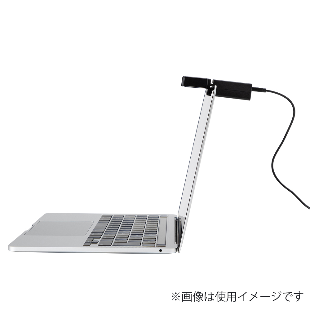 PC作業中の手元をやさしく照らすLEDライトです。PCディスプレイ上部をバネ式クリップで挟むだけで取り付け可能、USB接続で簡単に使えます。ノートPCの内蔵カメラを傷つけないクリップ形状です。(※)