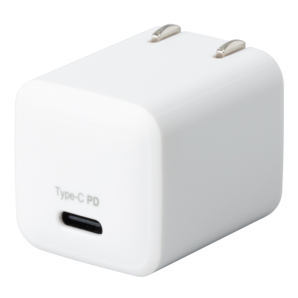 - 最大出力30WのPD(Power Delivery)規格に対応したUSB Type-C 1ポートタイプの小型充電器。