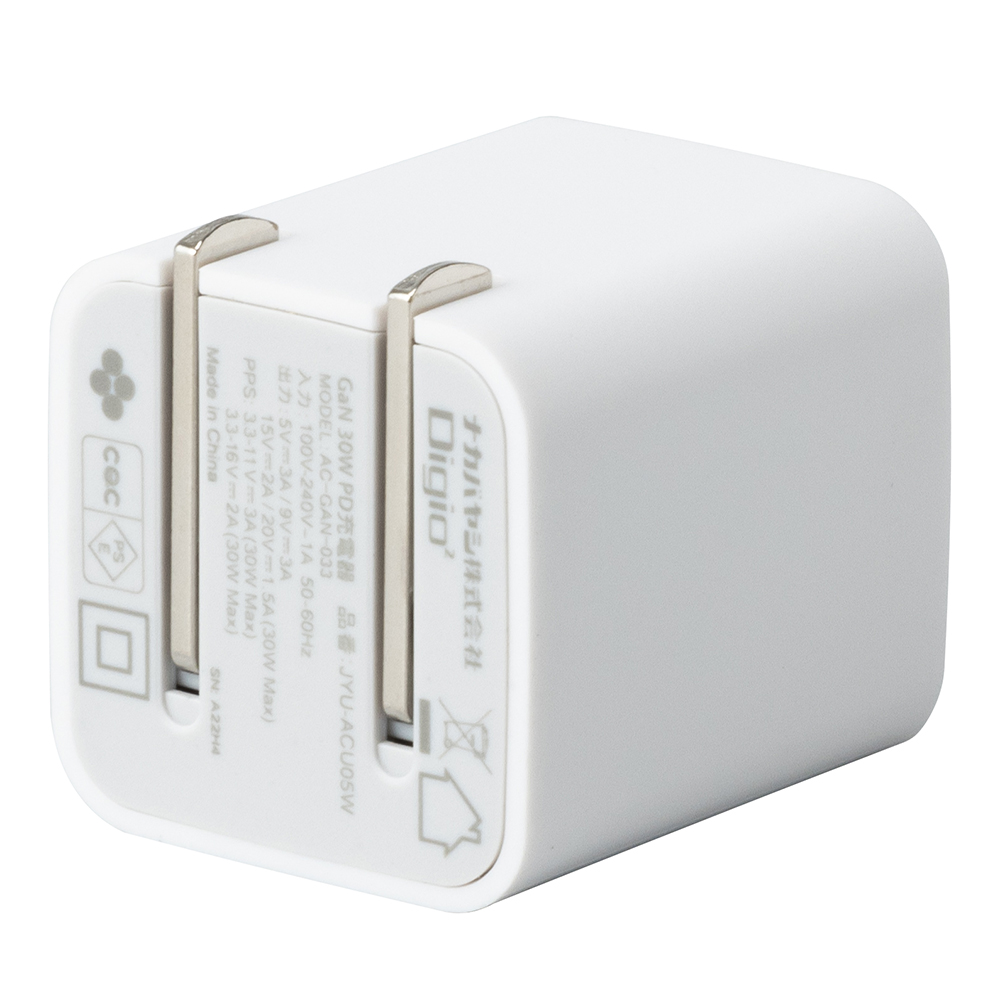 GaN 30W PD-PPS 充電対応 Type-C 1ポート充電器【JYU-ACU05】ホワイト
