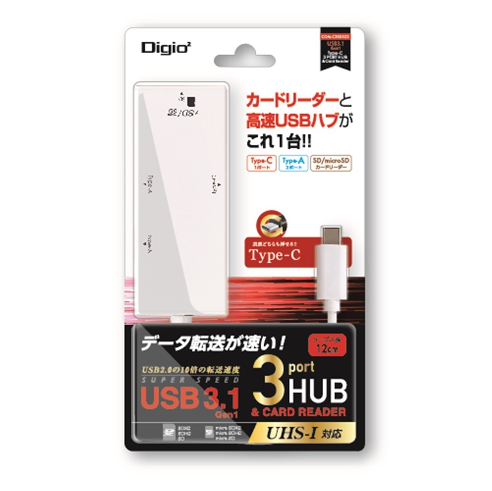 ●ハブ部分はUSB3.0、カードリーダー部分はUHS-l仕様の高スペック
