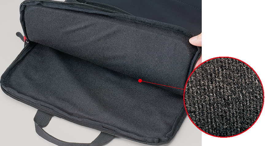 - クッションと起毛素材の裏地でノートPCをやさしく保護