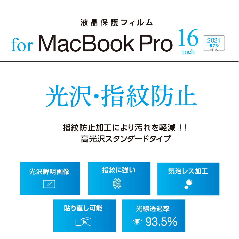 MacBook Pro 16インチ用フィルム/光沢指紋防止