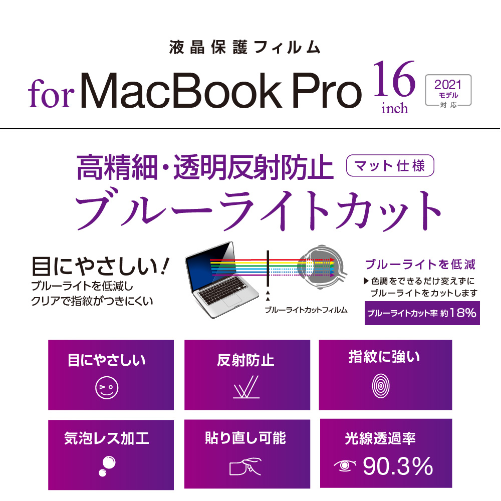 MacBook Pro 16インチ用フィルム/高精細・反射防止ブルーライトカット