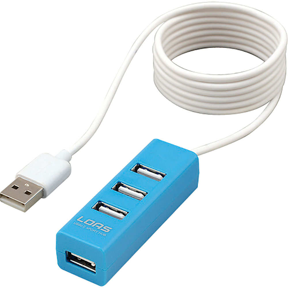 ケーブル一体型4ポートUSBハブ。ロングケーブル120cm。