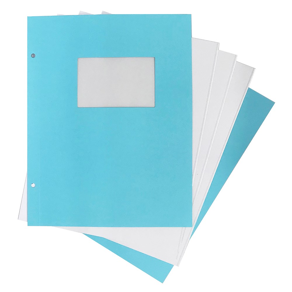 貼ってはがせて、いろいろな筆記具で直接書き込むことができる『かける?の台紙』タイトルカードシート付き(切取式)で、簡単に見栄え良く提出物がまとめられる写真や図が入るポケット付き表紙