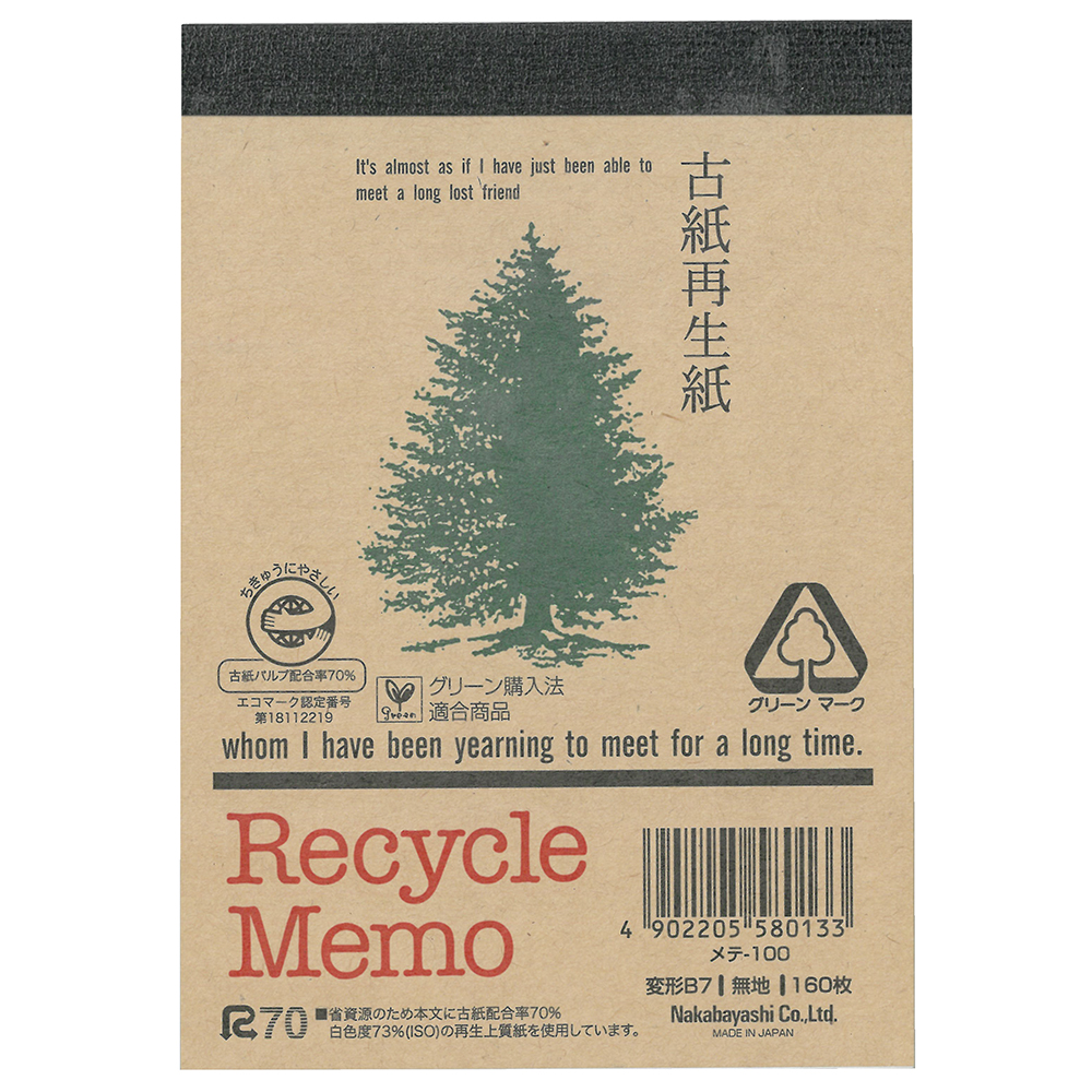 古紙再生紙 メモ帳 リサイクルメモ B7
