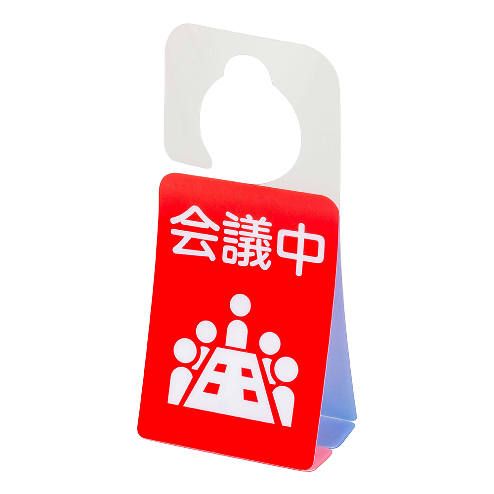 ラインアップは「NG・OK」、「使用中・使用可」、「会議中・休憩中」、「在宅勤務・打ち合わせ中」、「離席中・外出中」の5種類。裏表の異なる表示内容に、付箋を貼って情報を補足するなど、様々な状況で活用できます。
