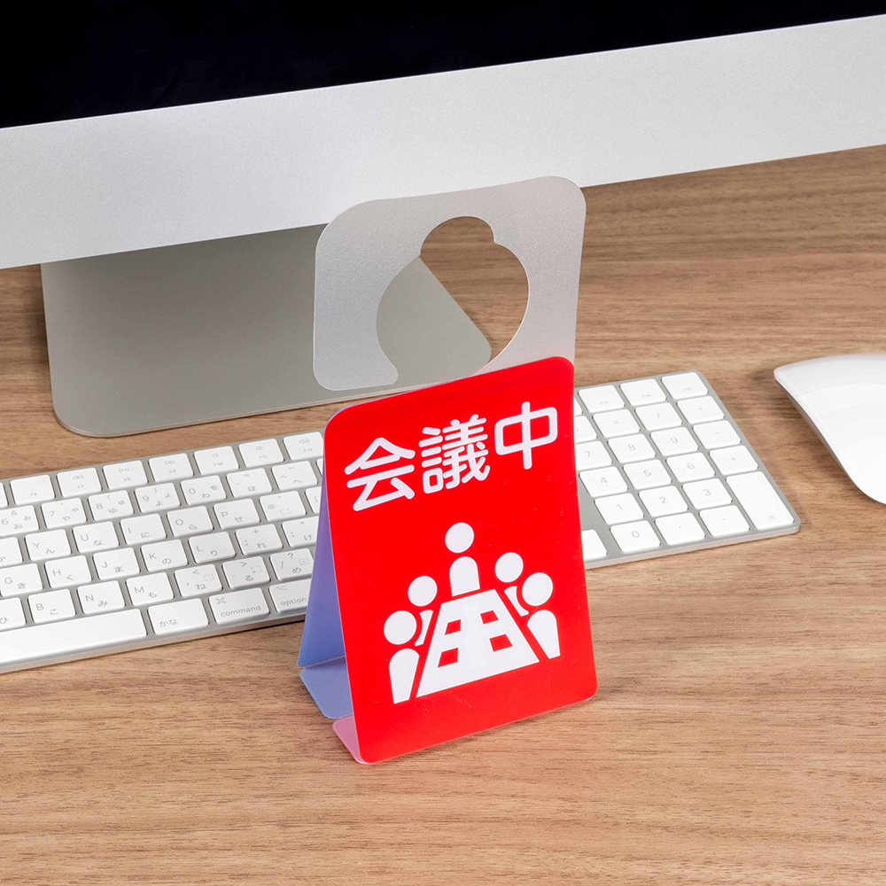 「在宅勤務・打ち合わせ中」などの状況を裏表で簡単にお知らせ!