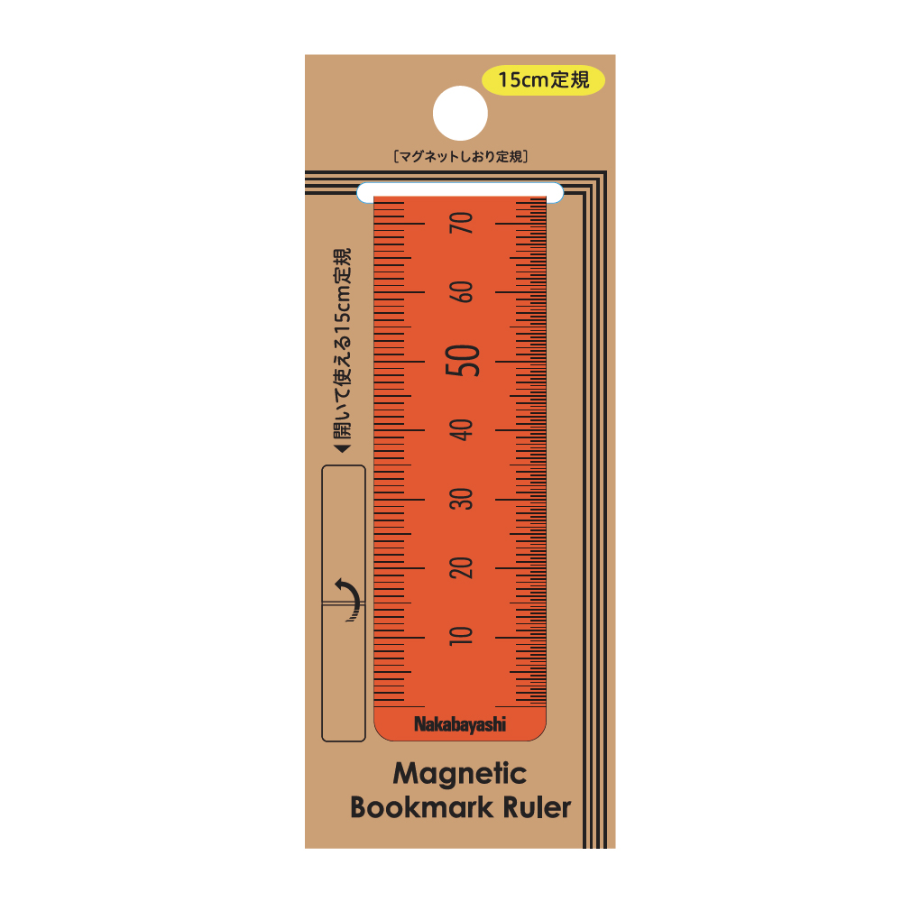 定規の機能を持ったマグネット式のしおりです。手帳や本などに挟んでブックマークとしてご使用のほか、折りたたみ部分を開いて定規としてもお使い頂けます。"