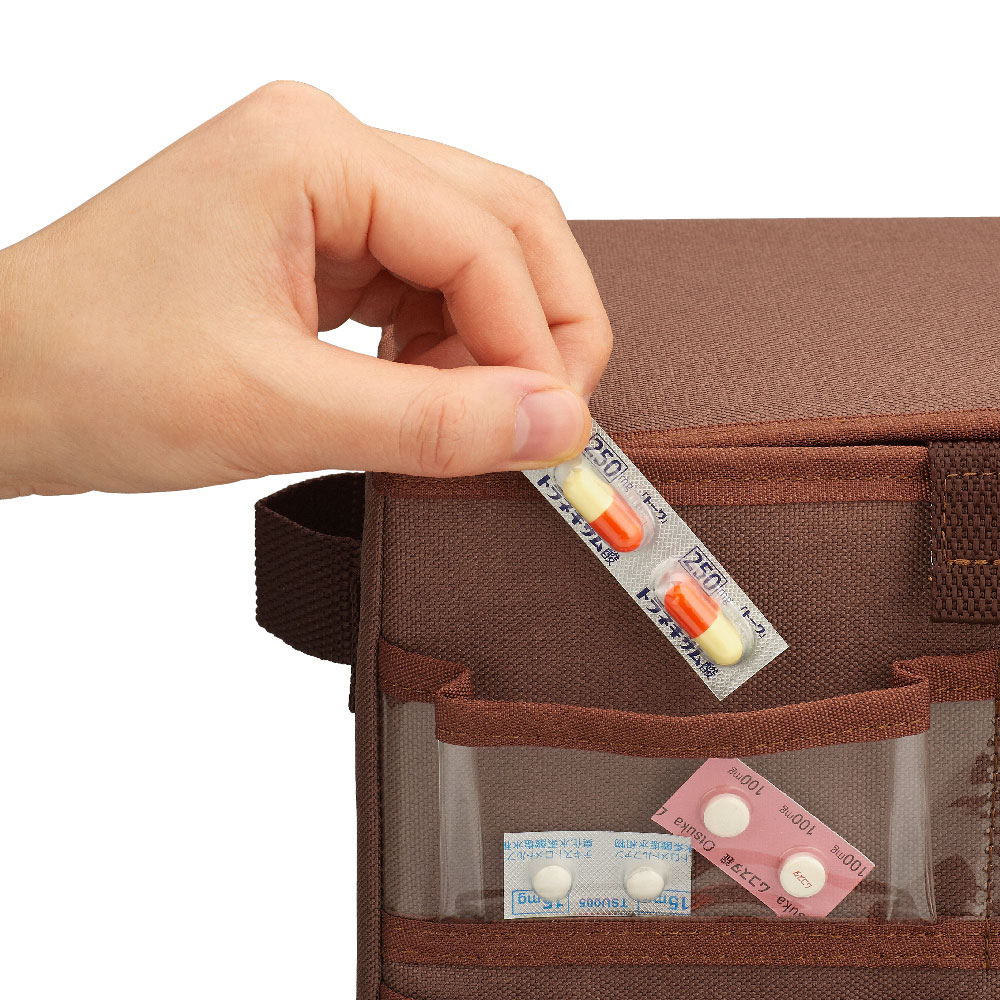 病院でもらう処方箋をそのまま入れられる収納BOXです。正面の透明ポケットには、朝・昼・夜・寝る前に飲む薬が入れられるので飲み忘れの防止になります。