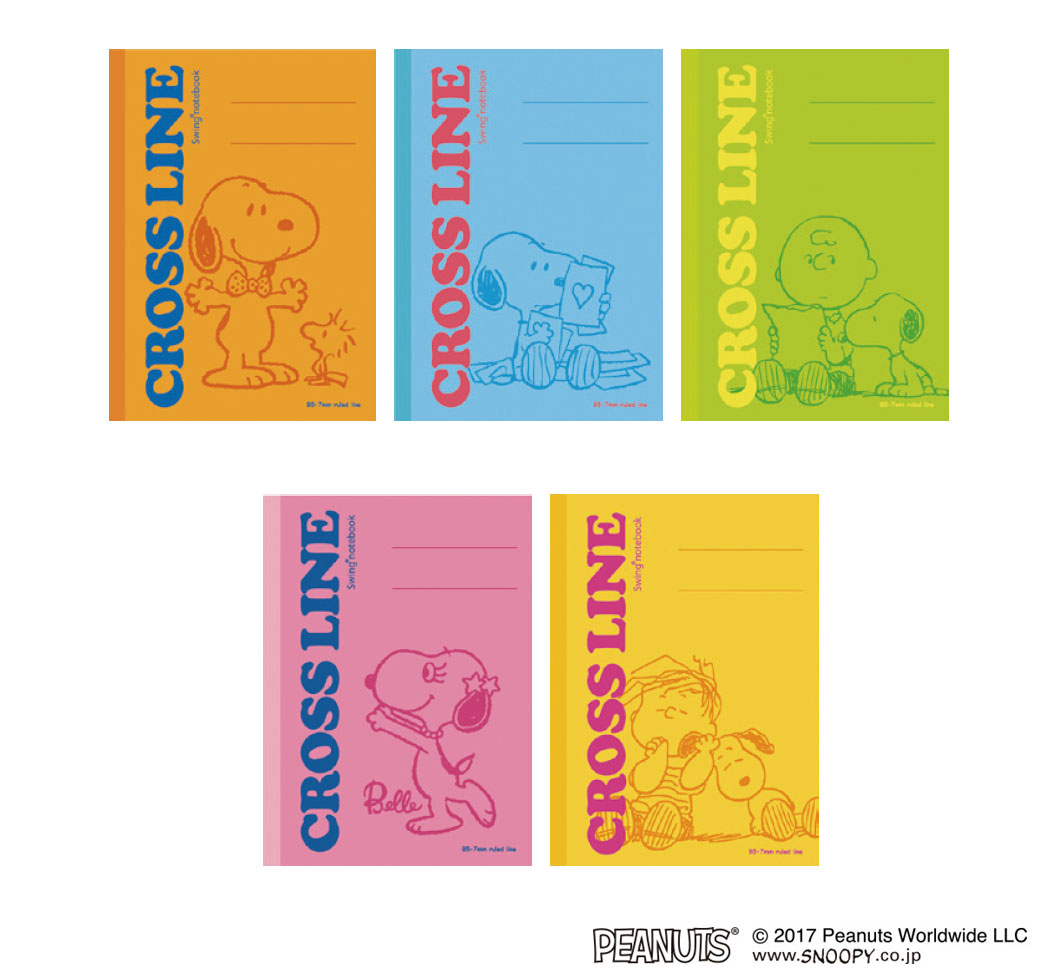 きれいに記入しやすいクロスラインノートに、ピーナッツキャラクターの表紙を採用し、高い機能性とデザイン性を両立させました。科目で使い分けできる5冊パック