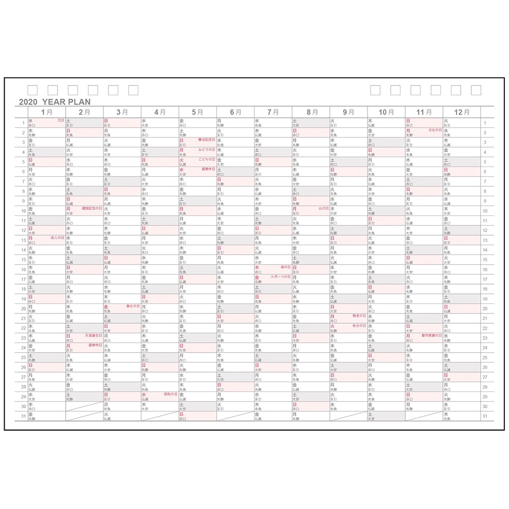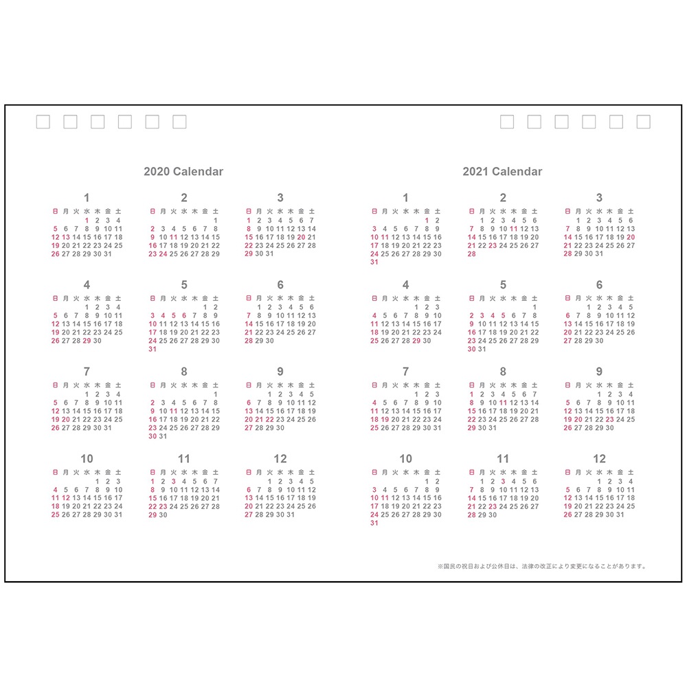 ●きれいに記入できて読みやすいロジカル罫を月間カレンダーに採用。日曜始まり。