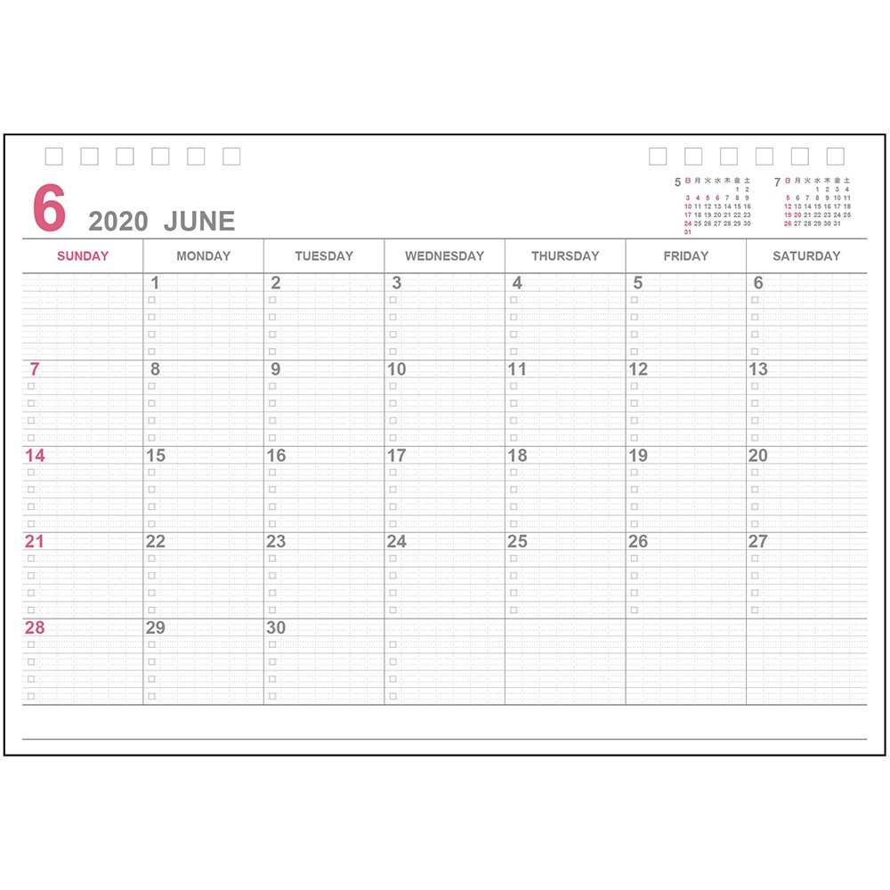 ●きれいに記入できて読みやすいロジカル罫を月間カレンダーに採用。日曜始まり。