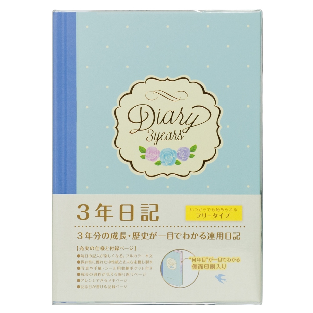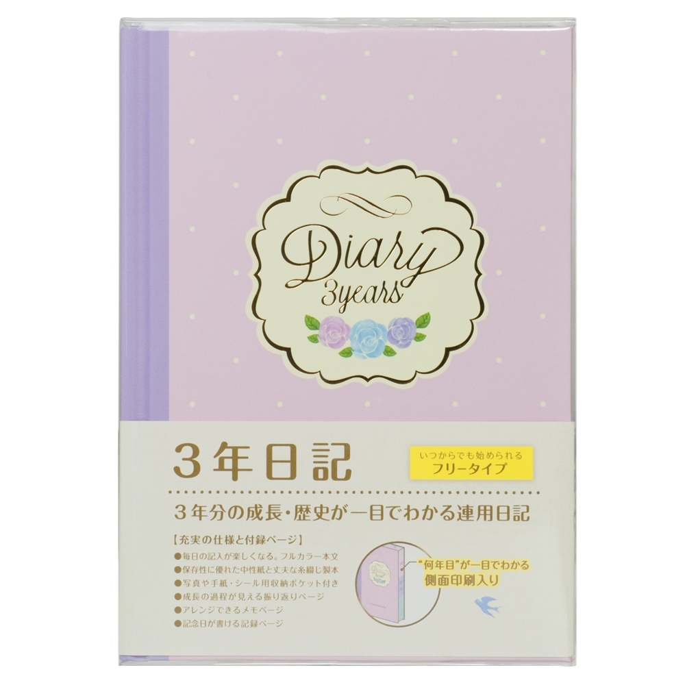 本文の側面に印刷をほどこした、特別感がいっぱいの女性向け連用日記帳。自分の成長・歴史が一目でわかる連用タイプ。付録ページも充実し、思い出を残したり、記念日を記録したり、自己啓発をしたり…日々を記すだけでなく、自分史として1冊をつくりあげていく醍醐味を味わえる日記帳です